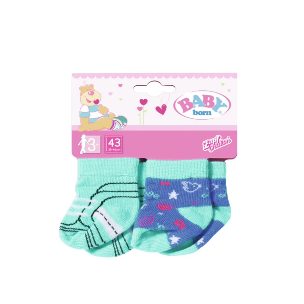 Zo veel keuze, BABY born wordt er van haar sokken door geblazen. Geen wonder dat ze het liefst alleen maar sokken draagt! Schoenen zouden die pracht om haar voetjes alleen maar verbergen. De effen sokken zijn er in rood, roze en turquoise, met grappige geïntegreerde witte veters. En als ze aandacht wil trekken, draagt BABY born haar sokken met ringpatroon in alle kleuren van de regenboog of de blauwe met ruimtemotieven. Traditionele grijze sokken met bloemenpatroon en gedecoreerde rode sluitingen zijn perfect om te dragen met een elegant jurkje. Als je sokken draagt, kun je ook net doen of je op het ijs danst op de parketvloer in je woonkamer. Wieeeeeee!