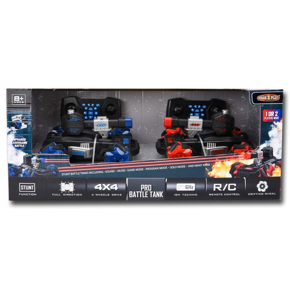 Het wordt een spannende strijd Gear2Play op afstand bestuurbare Pro Battle tankset elektromotor! Wees alert en wijk uit.