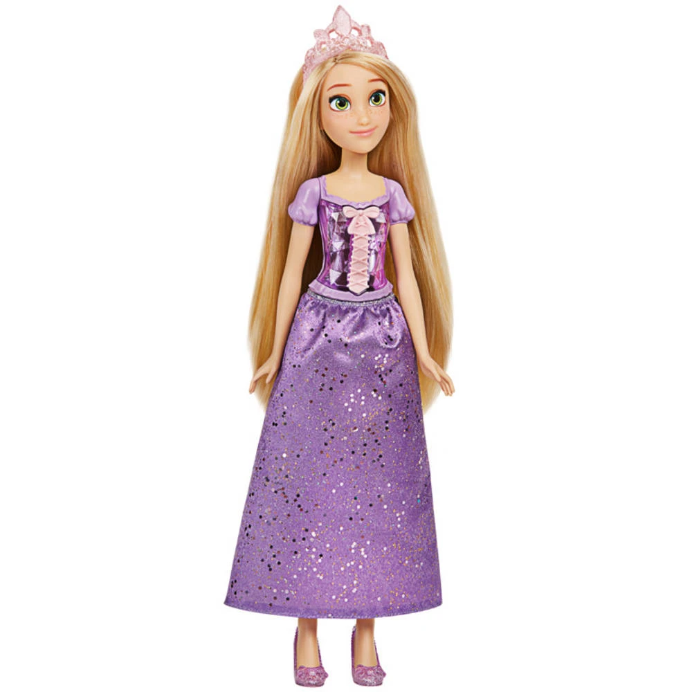 Voeg deze Disney Princess Royal Shimmer pop van prinses Rapunzel toe aan je collectie. Dapperheid, buitengewone lokken en pakkende musicalliedjes laten Rapunzels diepste dromen uitkomen in de gelijknamige Disney film. Met deze Royal Shimmer Disney Princess pop kunnen kinderen fantaseren over hoe Rapunzel uit haar toren ontsnapt en hun woonkamer binnenkomt! Deze Disney pop, die geïnspireerd is op het filmpersonage, wordt geleverd met een modieuze poppenrok en accessoires zoals een tiara en schoenen in haar kenmerkende kleur paars. Kinderen kunnen leuke momenten beleven door met deze pop met lang blond haar scènes uit de Disney film na te spelen. Deze mooie Rapunzel pop is een geweldige toevoeging aan jouw collectie Disney poppen!