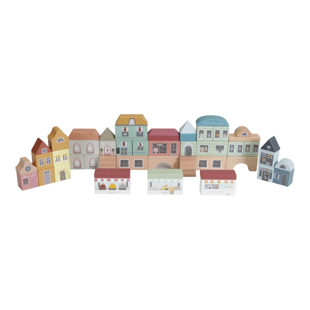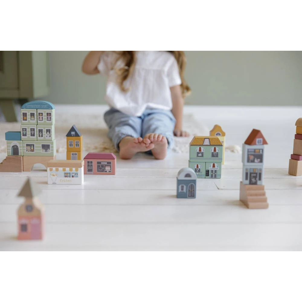 De blokkenstad van Little Dutch Little Railway Collection is ideaal om je eigen stad mee te bouwen. De set bestaat uit 50 onderdelen waarmee je onder andere winkels, een hotel en een restaurant kunt bouwen. Kinderen beleven heel veel plezier aan het bouwen met de blokken. In combinatie met de treinset XXL van Little Dutch kun je de stad helemaal afmaken.