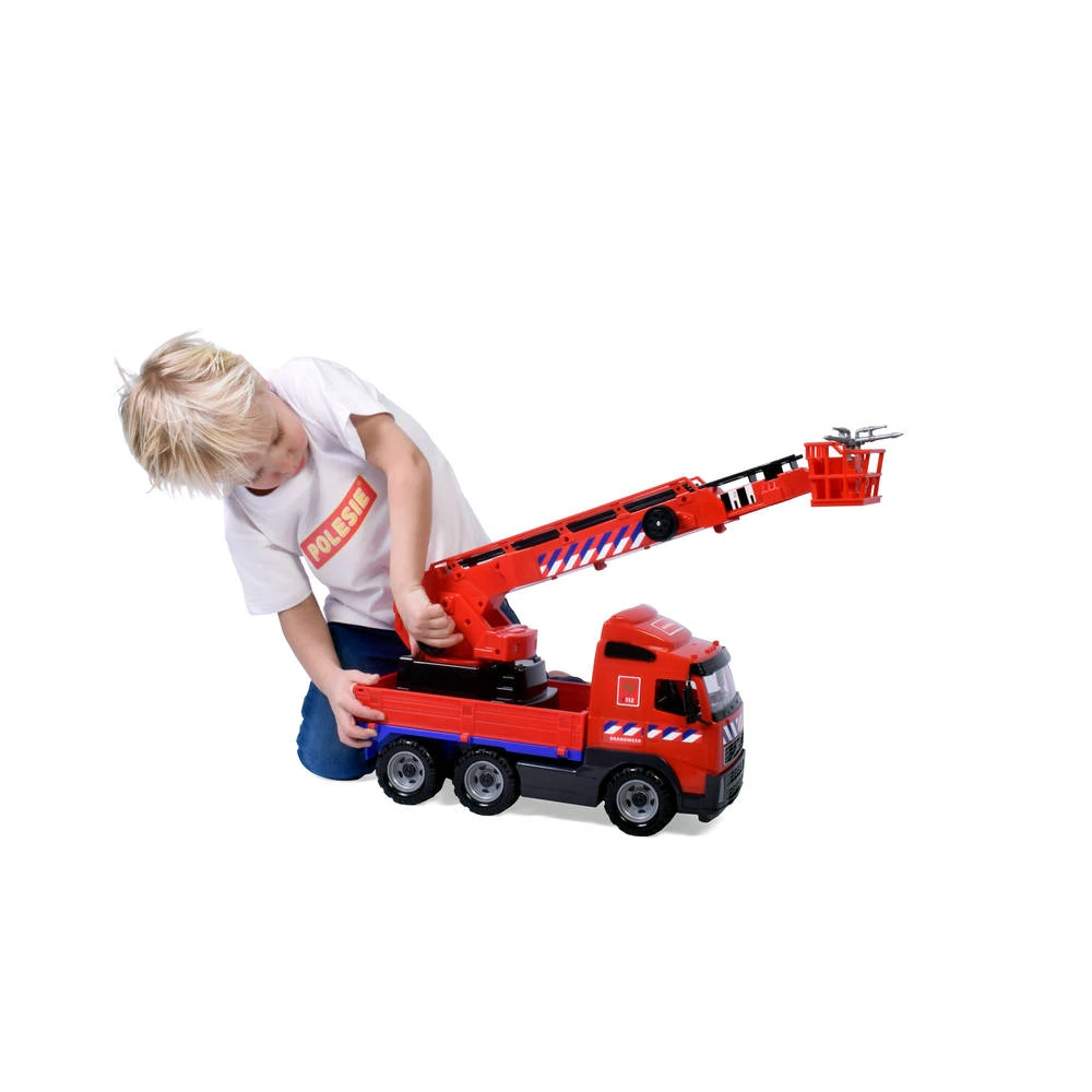 Met de stoere Volvo PowerTruck brandweerwagen blus je gemakkelijk brandjes in hoge gebouwen. Op de vrachtwagen zit een kraan met korf. Je kunt deze kraan uitschuiven, draaien en verhogen. Hierdoor kun je je gemakkelijk een echte brandsituatie inbeelden. Onder de wagen zitten zes wielen die zorgen voor extra stabiliteit. Doordat de kraanwagen van sterke kunststof is gemaakt, is hij van topkwaliteit.