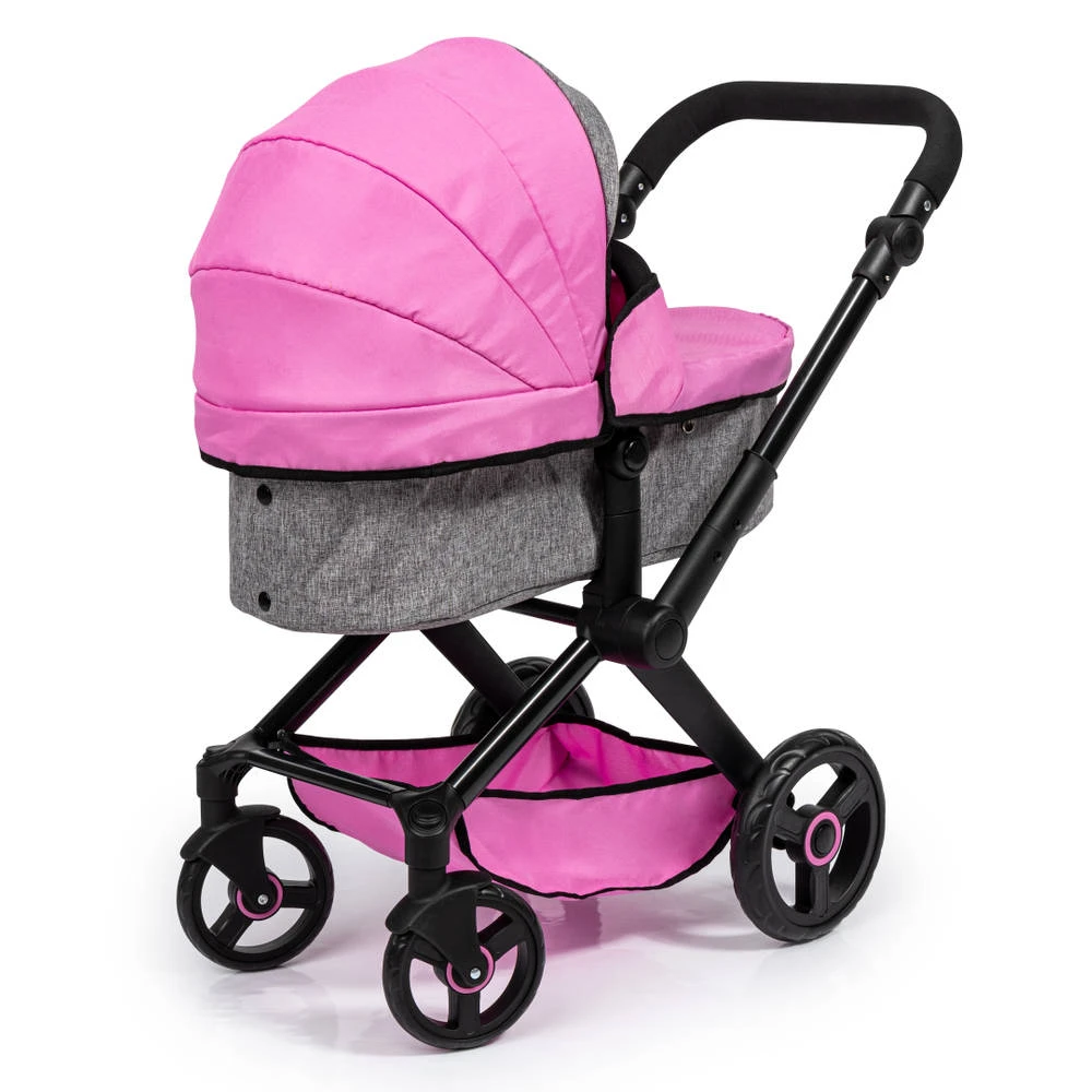 Neem je pop gezellig mee in deze roze XEO poppenwagen. Deze combipoppenwagen heeft een extra tas en een verstelbaar handvat.