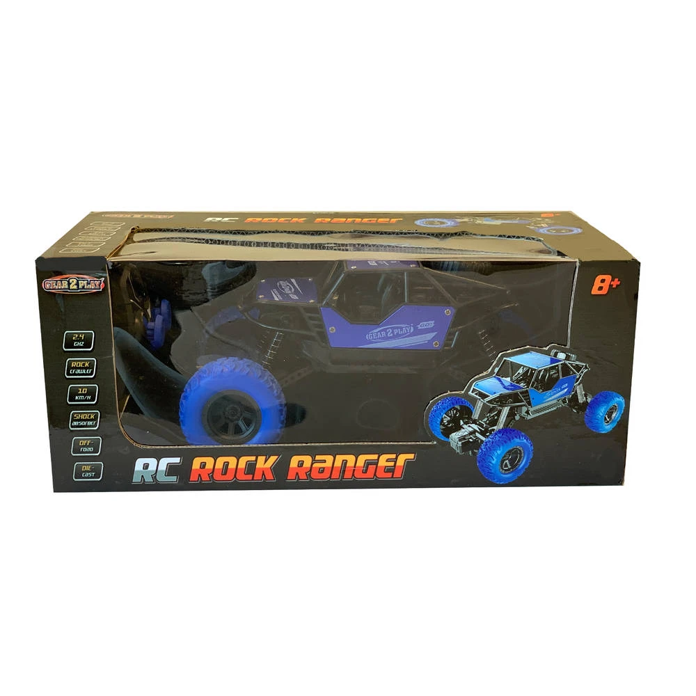 Race als eerste over de eindstreep met deze of afstand bestuurbare Rock Ranger. Deze full function metalen terreinwagen is gemaakt op een schaal van 1:24. De blauwe Rock Ranger is uitgerust met een geveerde voor- en achteras. Door de krachtige elektromotor kan de Rock Ranger een snelheid van ongeveer 10 km per uur bereiken. De terreinbanden met extra grip kunnen alle ondergronden aan. Ideaal voor in- en outdoor. Deze auto heeft een frequentie van 2.4 Ghz en een bereik van ongeveer 25 meter. Hij werkt op drie – en de controller werkt op twee AA-batterijen.
