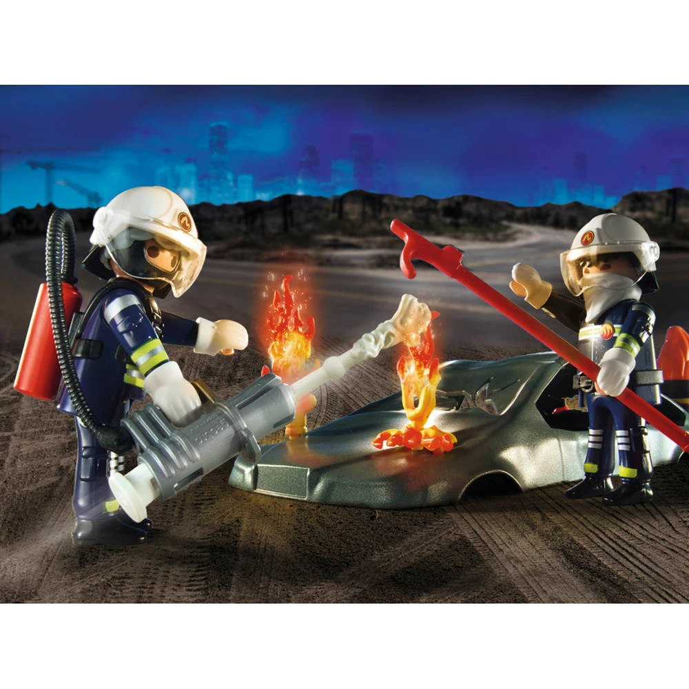 - De set bestaat uit twee brandweerlieden, een autowrak, drie tonnen met aankoppelbare vlammen, een schuimwerper voor brandbestrijding, handschoenen, helmen en andere brandweeruitrusting.