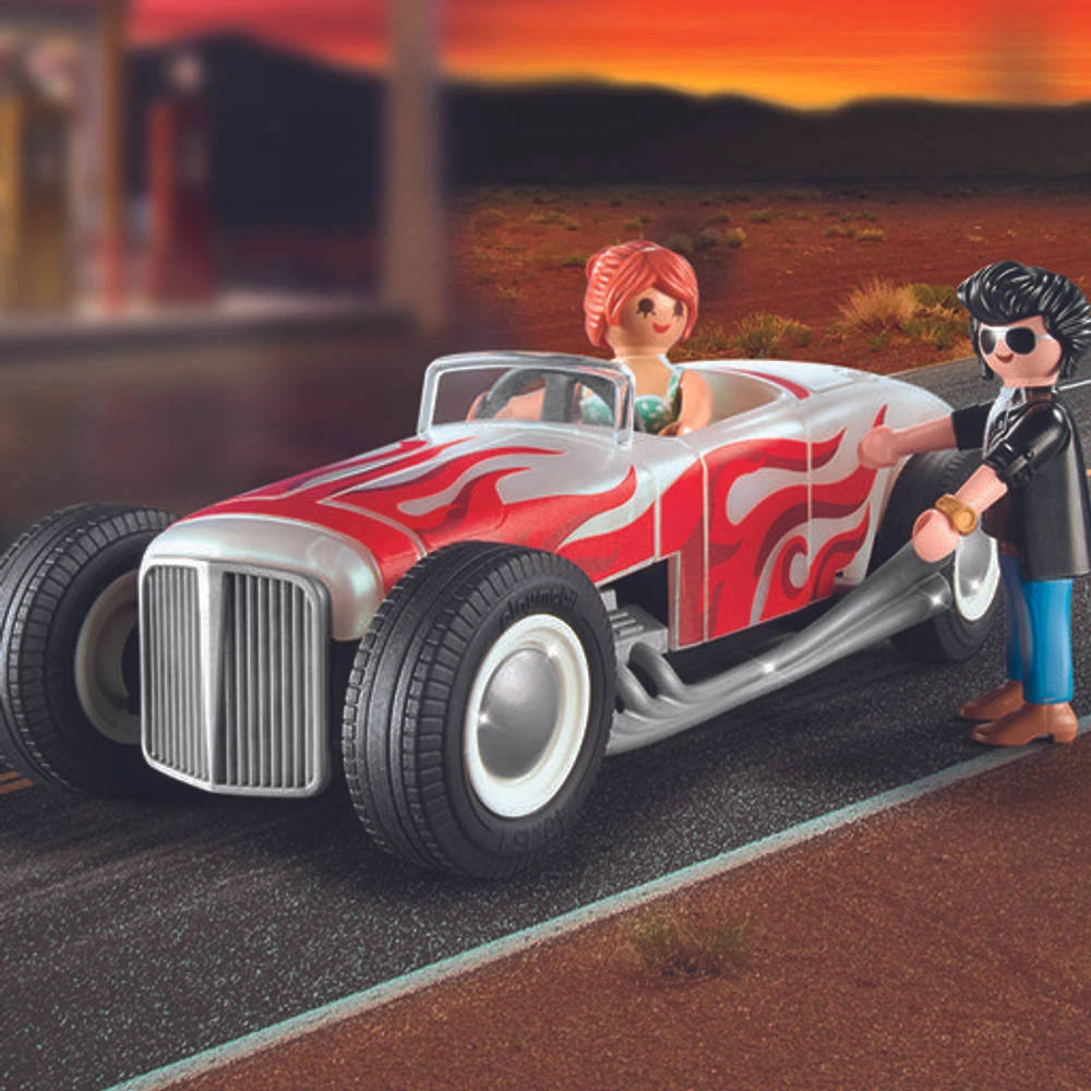 De coole Playmobil hot rod set neemt je mee terug naar de jaren ’50. Met de coole auto op weg naar de eerste date! PLAYMOBIL-nr. 71078