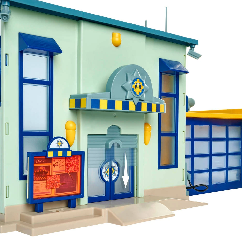 Met dit Brandweerman Sam politiebureau met figuur kun je zelf je favoriete momenten uit de Brandweerman Sam serie naspelen. Pak de boeven en zet ze achter slot en grendel in het politiebureau. Deze schitterende speelset is voorzien van oorspronkelijk geluid, blauw licht en zoeklicht, een mechanische lier en Tom Thomas figuur.
